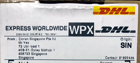 注文した販売サイトのETORENでは24日シンガポール発、29日に日本着となっていましたが、DHLのホームページで確認したところ、30日着に変わっていました。